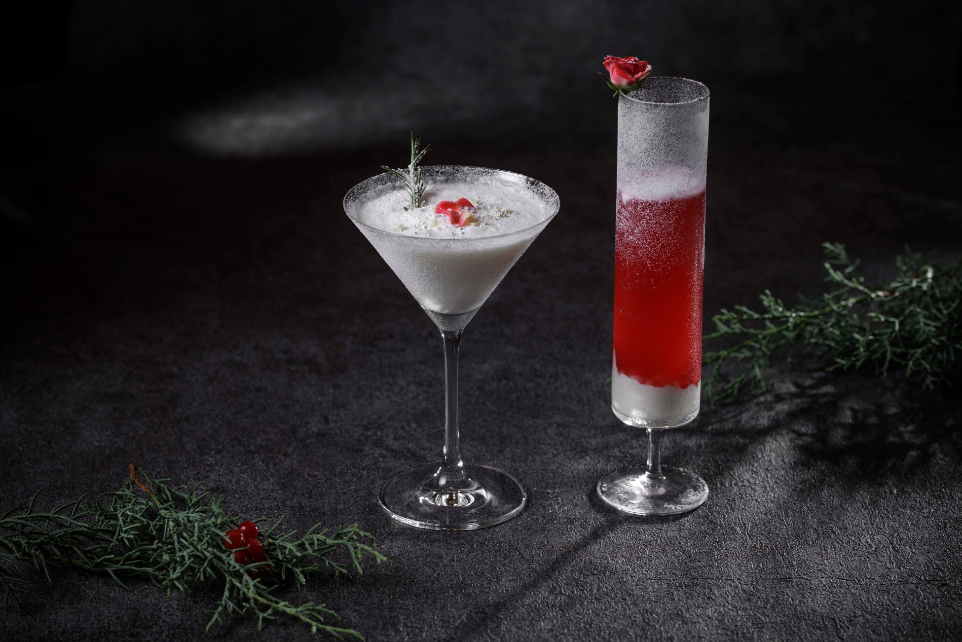 寒い季節に降り注ぐ、冬の雪景色の美しさを一杯のグラスで表現した2種の特別なカクテルをご用意しました。雪のきらめきをホワイトチョコレートで表現したノンアルコールカクテル『X’mas Rose』は、ローズの香りとクランベリーの彩り、優しい甘さが口に広がる華やかな一杯。ホワイトチョコレートの濃厚な甘みと雪のような白い輝きが印象的なアルコールカクテル『White Noel』は、ローズマリーとベルローズをあしらい、聖夜を象徴するリースのように華やかさを演出します。大切な人と過ごす特別な夜にふさわしい、心温まるクリスマスカクテルです。