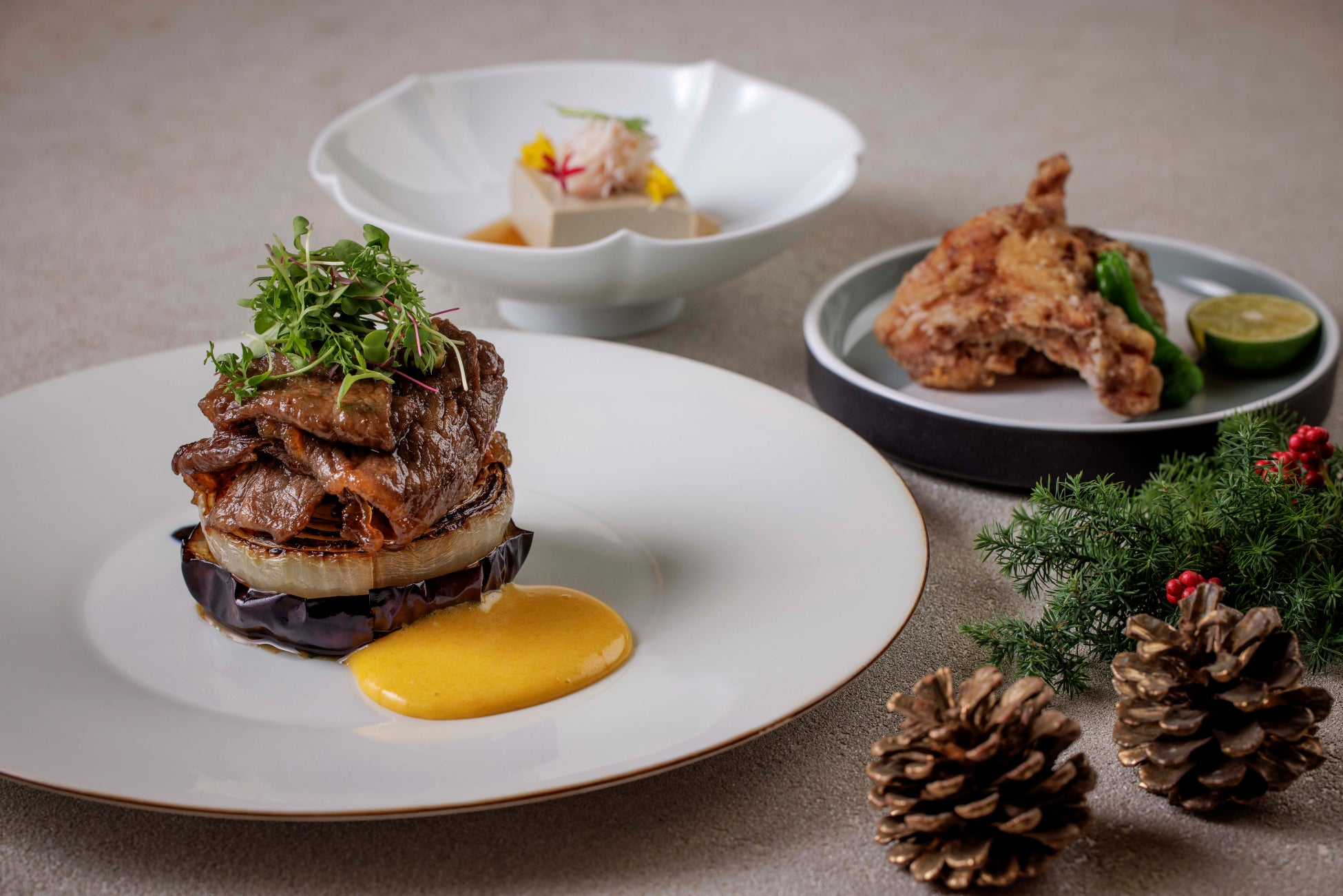 冬の美味を贅沢に織り込み、華やぎの季節にふさわしい特別会席をご用意いたしました。濃厚な蟹味噌羽二重や河豚の唐揚げ、そして和牛サーロインのすき焼き仕立てなど、旬の恵みを一品一品丁寧に仕立てた料理の数々。抹茶と大納言小豆のモンブランで締めくくる、雅な和のクリスマスコースをぜひご賞味ください。
