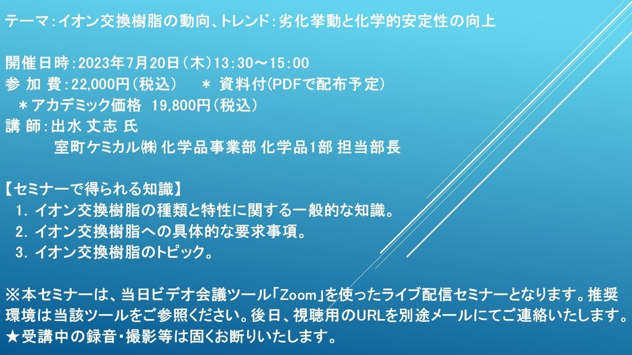 【ライブ配信セミナー】イオン交換樹脂の動向、トレンド:劣化挙動と化学的安定性の向上 7月20日(木)開催 主催:(株)シーエムシー・リサーチ