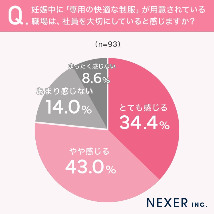 続いて、妊娠中に「専用の快適な制服」が用意されている職場について、社員を大切にしていると感じるかを聞いてみました。