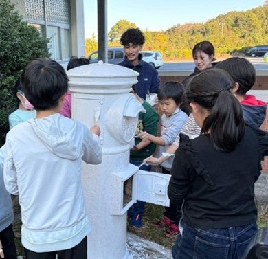 当会は、昨年12月13日(水)に美浜町立布土(ふっと)小学校で灯台ポストの制作と利活用を考える特別授業を行いました。郵便ポストは元々布土小学校の校舎内にあったもので、同校が令和10年頃に町内の学校と統合され閉校となる予定から、校舎内に立つ郵便ポストを野間埼灯台に移設し、小学校の名残を留めようと企画されました。特別授業には、昨年11月より、“現代版 灯台守(げんだいばん とうだいもり)”として町おこし隊に任命されたカップル(仙敷裕也、佐々木美佳)も参加し、小学生と共にポストを灯台カラーの白色に塗装しました。完成した灯台ポストは、1月20日(土)に小学校から野間埼灯台広場に移設され、灯台の新たなシンボルとして、また訪れた方が参加して楽しめるコンテンツの一つとして灯台の新たな魅力を創出します。