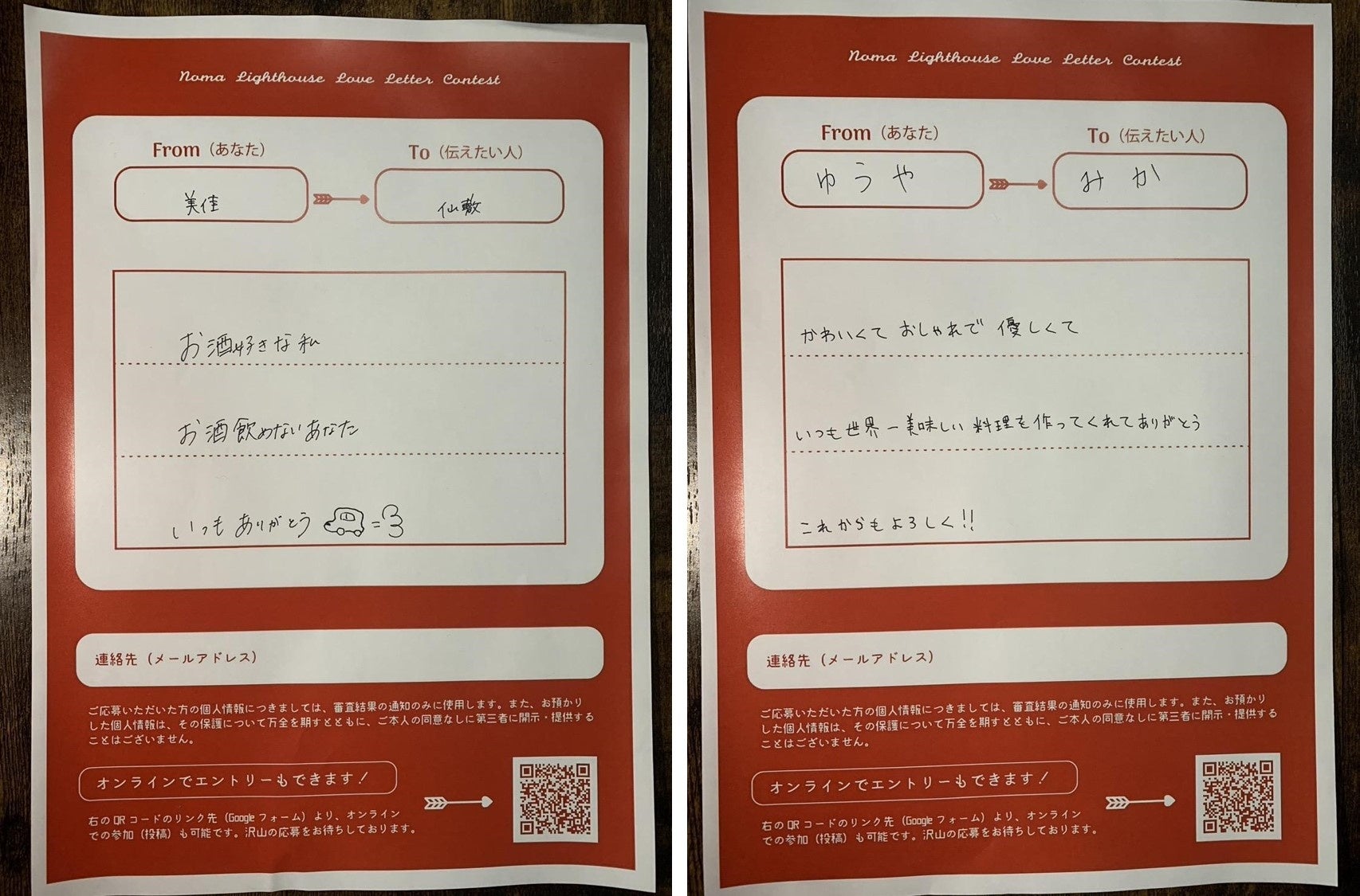 写真:現代版灯台守のカップルのふたりがお互いに向けて書いたラブレター