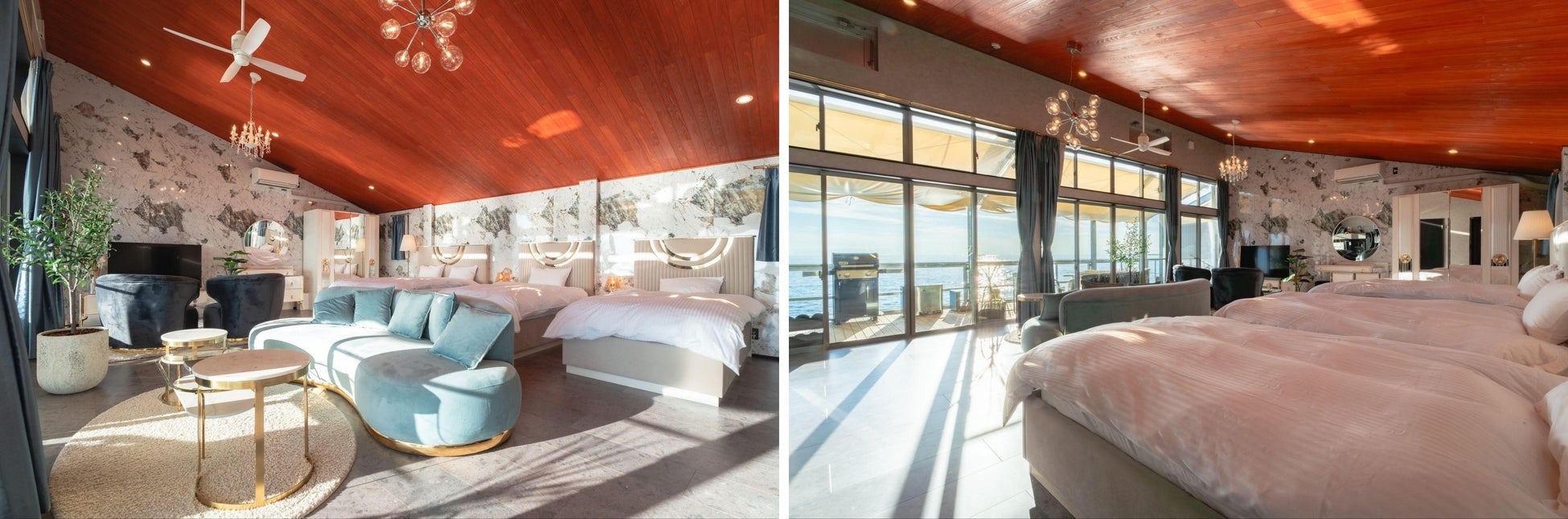 当コンテスト最高賞にあたる「ロマンチック大賞」の景品は、野間灯台からほど近い「ウッドデザインパーク野間」の向かいにある、リゾートグランピング宿泊施設【Glamping &Resort WOOD DESIGN PARK NOMA】のペア素泊まり宿泊券です。客室からは伊勢湾が広がる絶景を望むことができ、BBQや焚き火など、プライベート空間で非日常体験がお楽しみいただけます。
