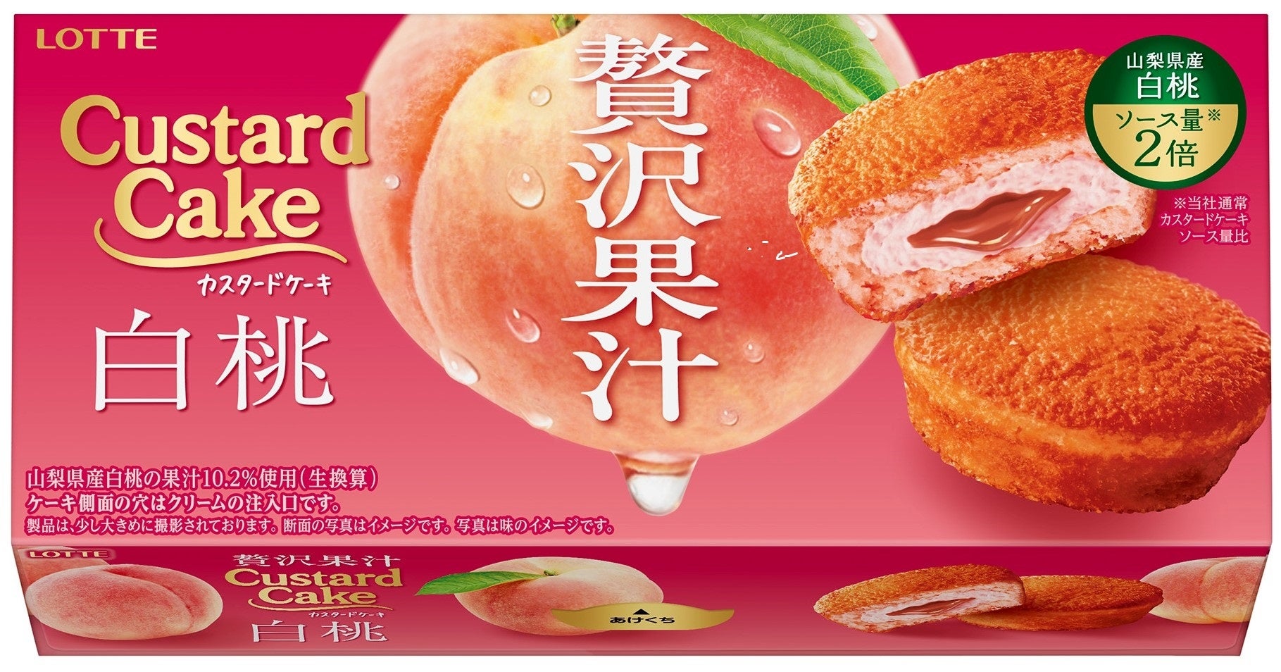 株式会社ロッテは、桃の開花時期とされる桃の節句よりひと足早い2025年2月18日(火)、日本一の桃の産地として知られる山梨県産の白桃果汁*を贅沢に使用した「カスタードケーキ<贅沢果汁白桃>」を全国にて発売いたします。