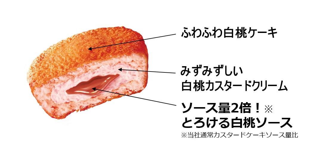 山梨県産白桃(*)の贅沢な味わいをたっぷり堪能!ソース量2倍(⁑)の新カスタードケーキ「カスタードケーキ<贅沢果汁白桃>」2月18日(火)全国にて発売