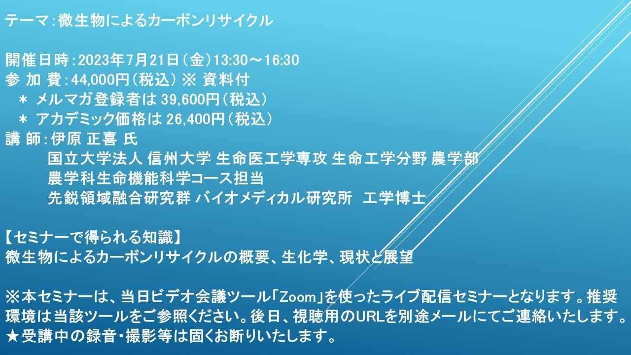 【ライブ配信セミナー】微生物によるカーボンリサイクル 7月21日(金)開催 主催:(株)シーエムシー・リサーチ