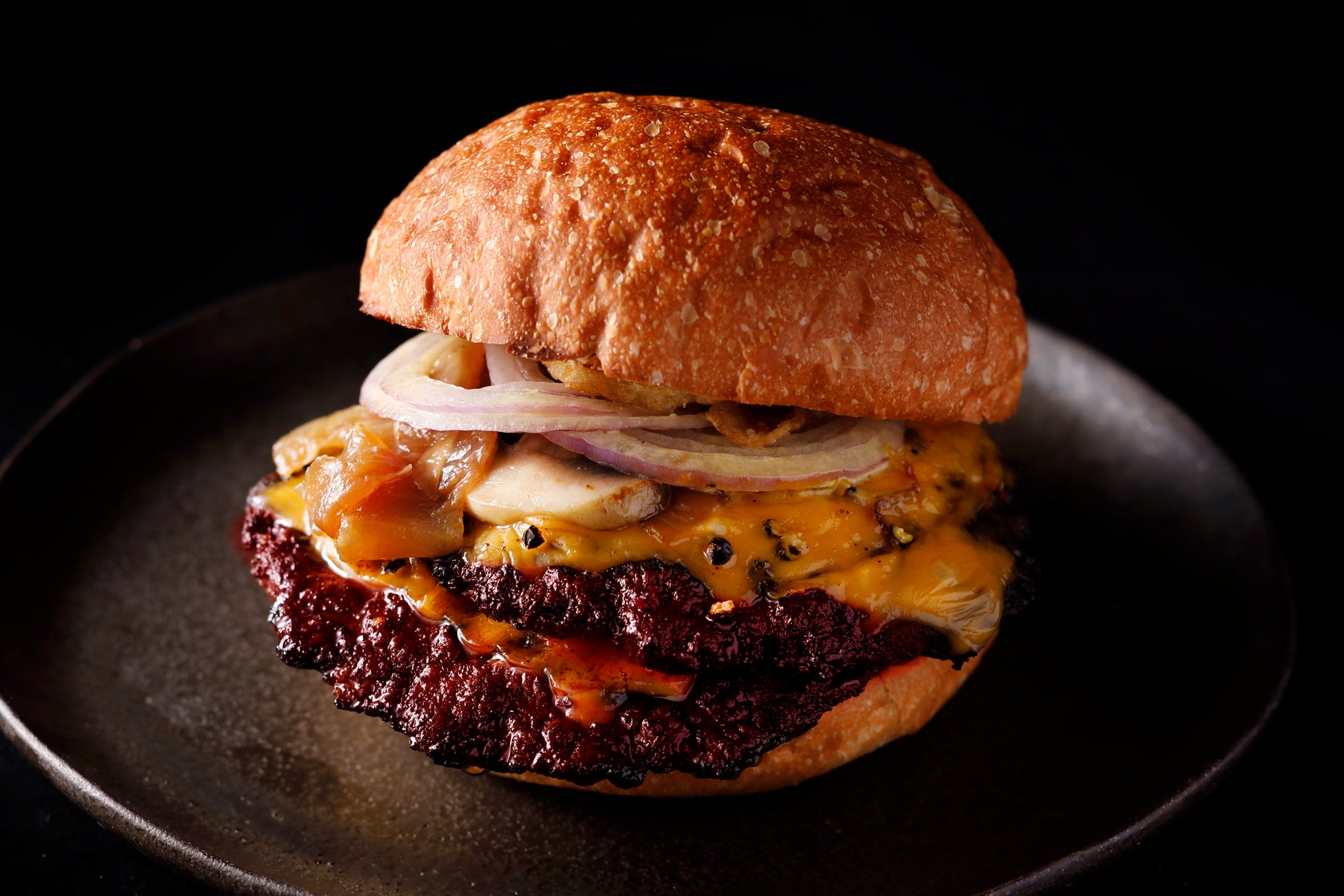 パティをスマッシュ(押し潰す)して香ばしく焼き上げることで、いわて短角牛の旨みと香りをギュっと閉じ込めました。とろーりチェダーチーズ、マッシュルームソテー、あめ色のオニオンソテーをサンドし、味付けには、肉の旨味を引き立てる赤ワイン風味のソースをチョイス。和牛の旨みをギュッと凝縮したジューシーな期間限定バーガーは思わずかぶりつきたくなる一品です。