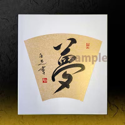『天と地 熊野をめぐる書巡礼』1冊に加えて、支援していただいた方への感謝の想いを込めて「福」または「夢」のどちらかおひとつをお選びいただき柏木白光が揮毫した色紙(242mm×273mm)を1枚お送りします