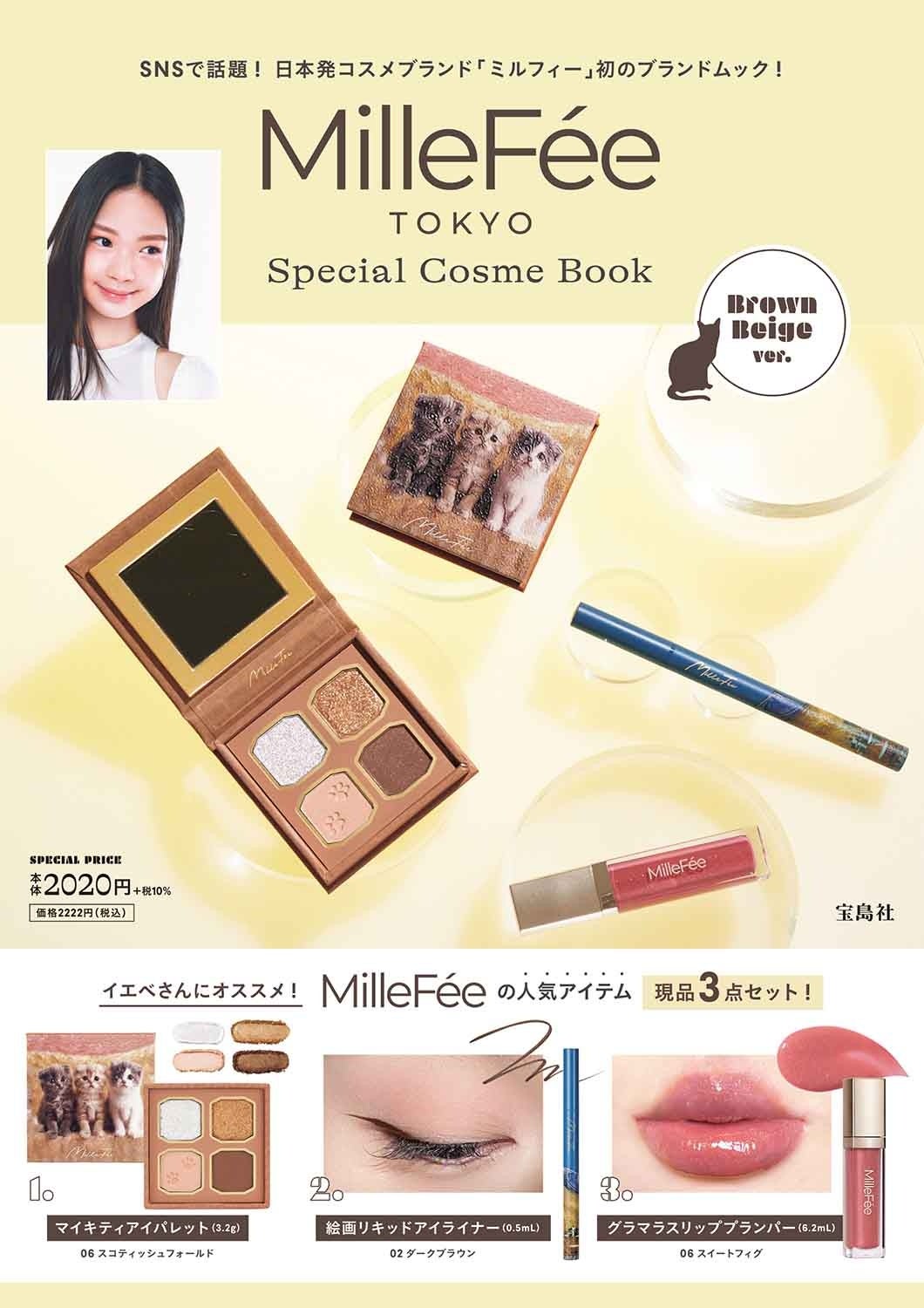 2つ目は、SNSを中心に話題のコスメブランド「MilleFée(ミルフィー)」初となる『MilleFée Special CosmeBook』。「Brown Beige ver.」と「Rose Pink ver.」の2種が4月10日(金)に同時発売! 人気の猫シリーズからマイキティアイパレット、絵画シリーズからアイライナー、そしてグラマラスリッププランパーがついてきます。