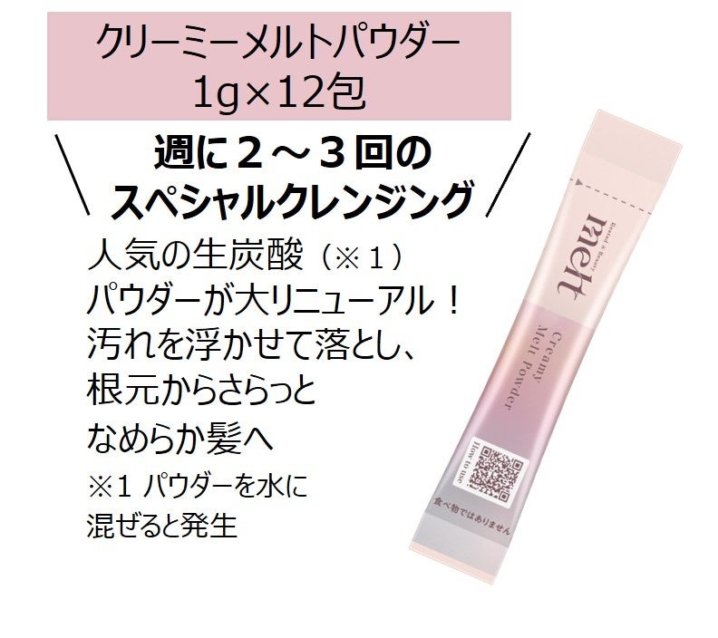 1つ目は、2025年に発売して反響を呼んだヘアケアブランド「melt(メルト)」の第2弾となる『melt Hair Careフルライン コレクション Book』! 4月23日(木)発売です。大リニューアルしたクリーミーメルトパウダーに加え、3種のシャンプー&トリートメントとコンディショニングウォーターが試せる豪華43点セット。