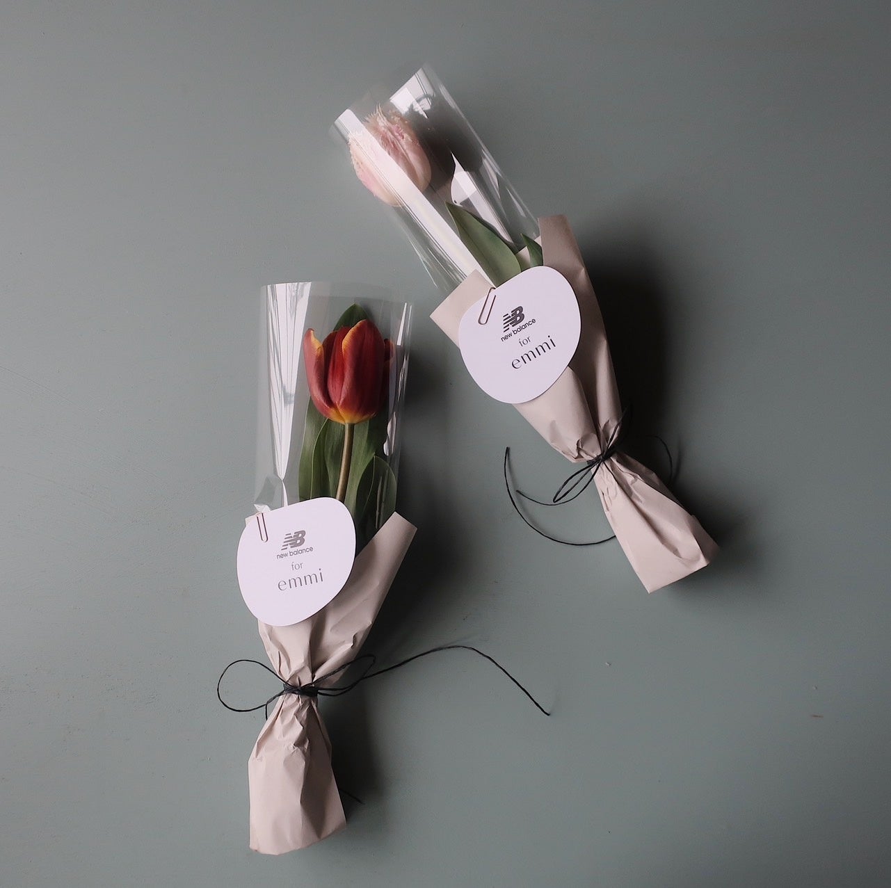 New Balance for emmiの対象のアイテムをお買い上げいただいた女性のお客様にメッセージカードを添えたフラワーブーケをプレゼントいたします。