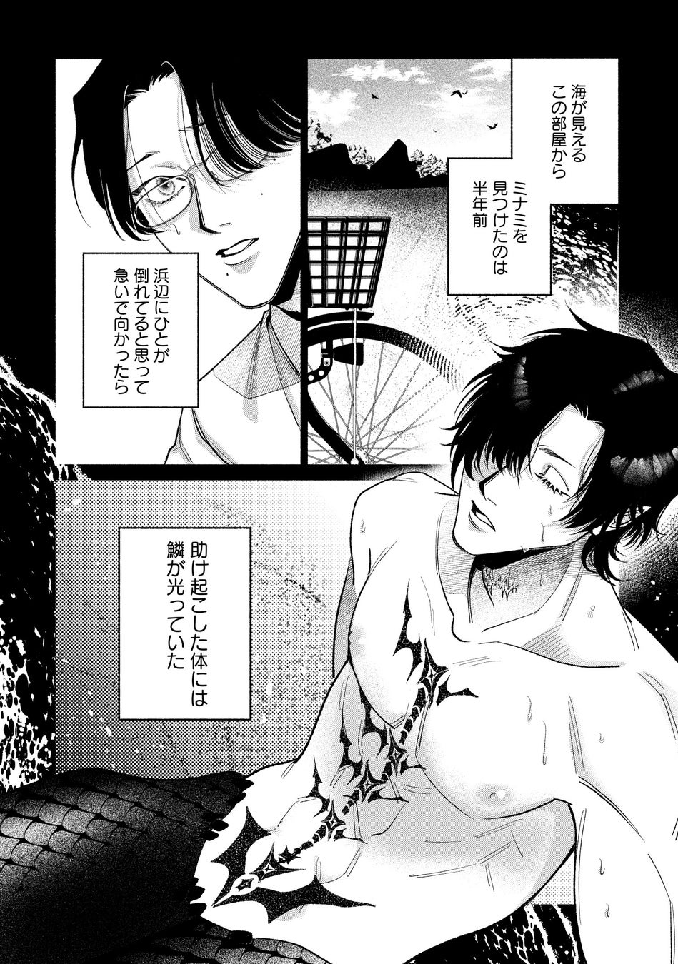 人魚の【ミナミ】を拾うまでは…。以前なら【苦】でしかなかった日常も、家にミナミがいると思えば和らいだのだ。健やかで明るく、美しく、そしてどこか陰がある。そんな彼がいればこそ、瞬は日常に小さな幸せを感じていられたのに……。