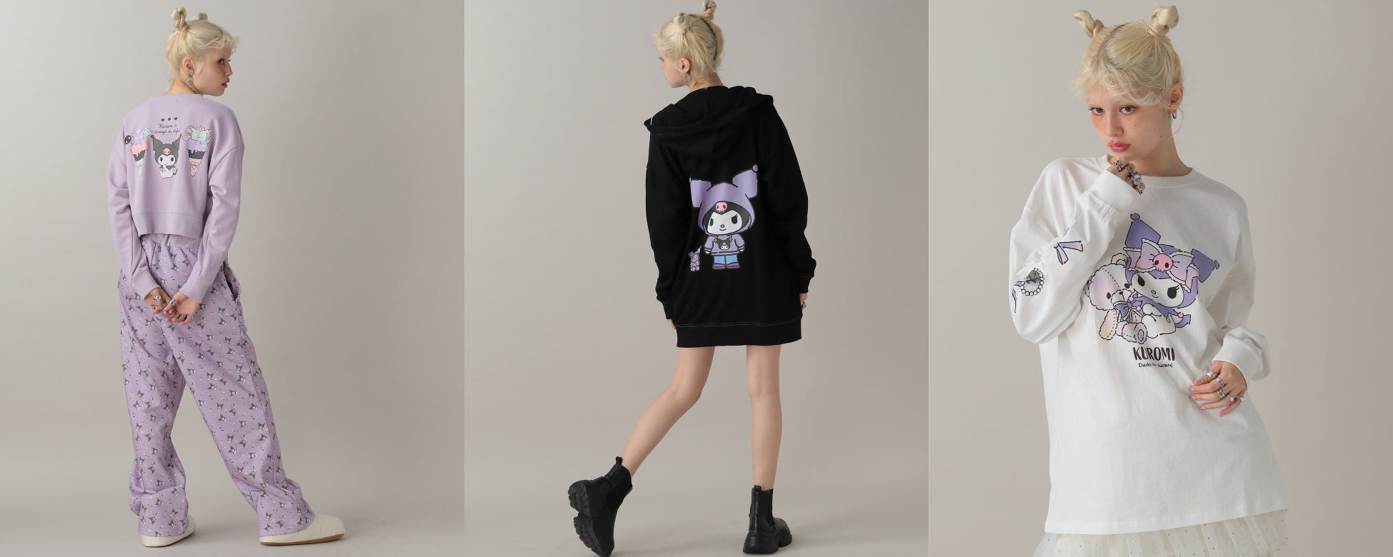 大きなクロミのプリントをあしらったアパレルアイテムと、ミラーやキーホルダーなどデイリーに使いやすい雑賀アイテムの全
