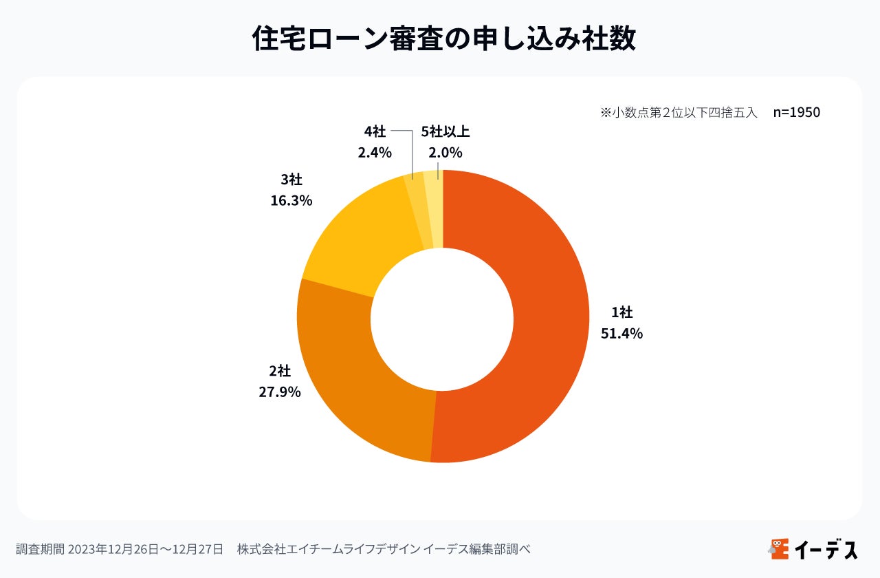 全体の48.6%の人が、住宅ローン審査を2社以上に申し込んでいる