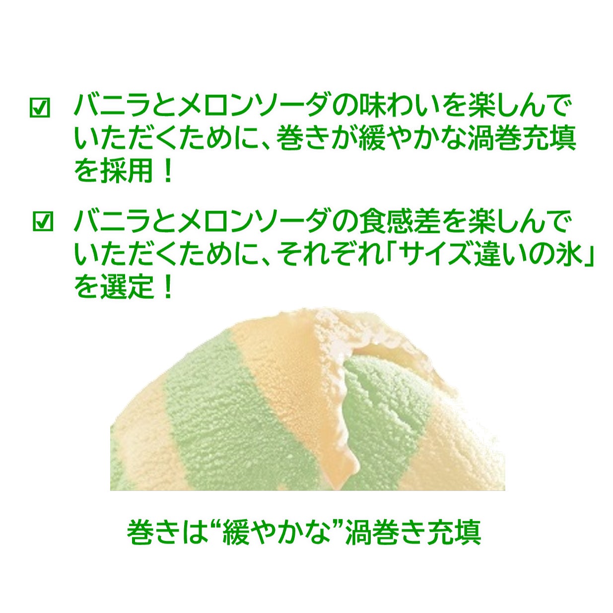 バニラとメロンソーダの絡み合った味わいが楽しめるように、巻きが緩やかな渦巻き充填を採用しています。