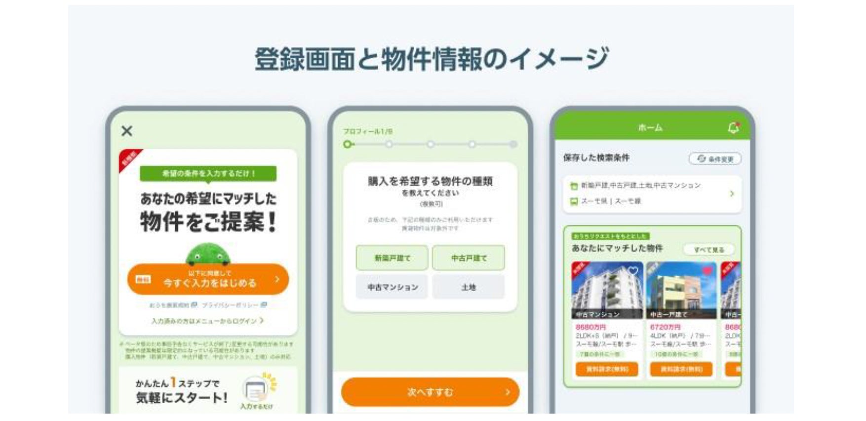 『おうちリクエスト機能』※では、ユーザーが自身のプロフィールや、希望する物件の種類、エリア、最寄り駅からの徒歩分数、広さ、間取り、築年数、物件価格といった希望条件(おうちリクエスト)を登録しておくと、自分で検索しなくても登録した条件により近い物件が提案されるようになります。また、登録した希望条件との一致状況(マッチ度)も分かりやすく提示され、ユーザーの意思決定をサポートします。