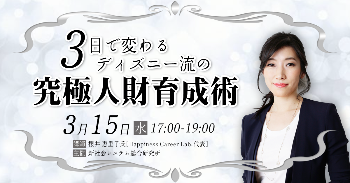 「3日で変わるディズニー流の究極人財育成術」と題して Happiness Career Lab.代表 ハピネスコンサルタント 櫻井 恵里子氏のセミナーを2023年3月15日(水)に開催!!