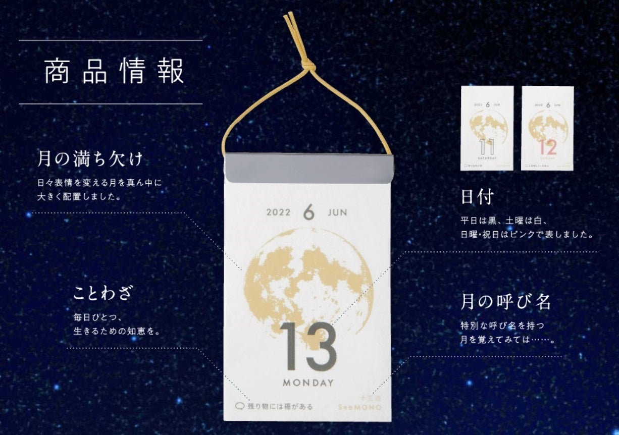 フェリシモ「SeeMONO[シーモノ]」から「月の満ち欠けを楽しむ、日めくりオリジナルカレンダー」が新登場