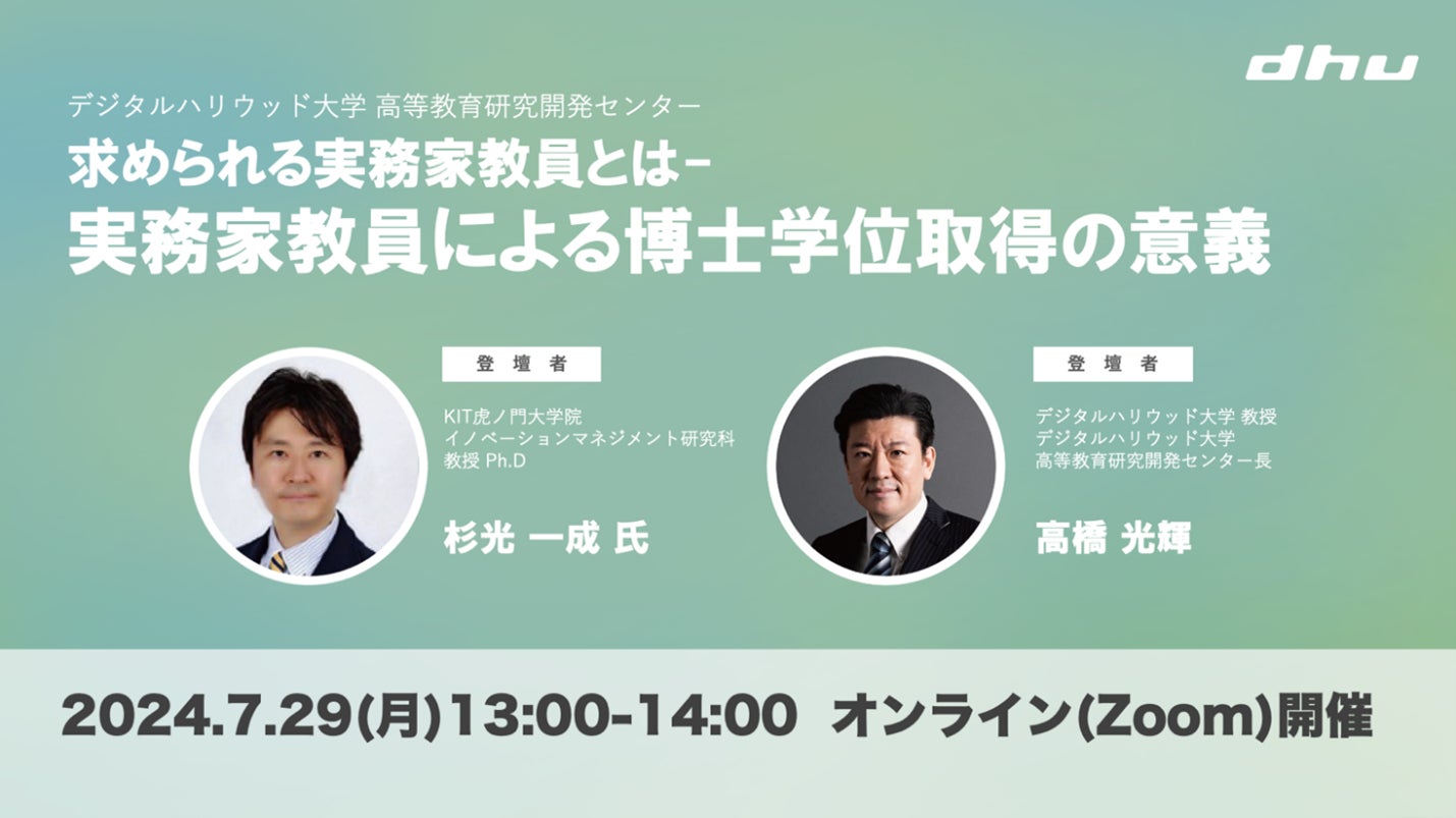2024年7月29日(月)13:00-14:00 オンライン開催(Zoomウェビナー)|主催:デジタルハリウッド大学[DHU] 高等教育研究開発センター