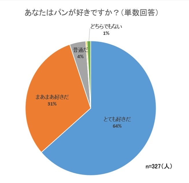 「パンが好き」な人は95%。約半数の人がほぼ毎日パンを食べている。好きなパン1位は「クロワッサン」。6割以上の人が、1つのパンに500円~1000円以上までかけてもいいと回答。
