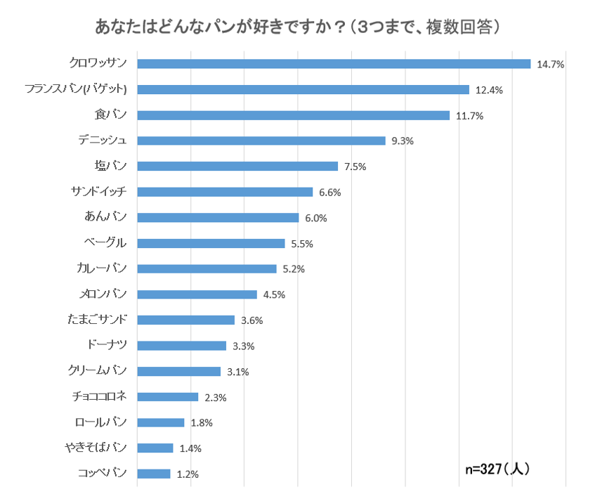 95%がパン好き。好きなパン1位は「クロワッサン」2位「フランスパン」3位「食パン」という結果に。