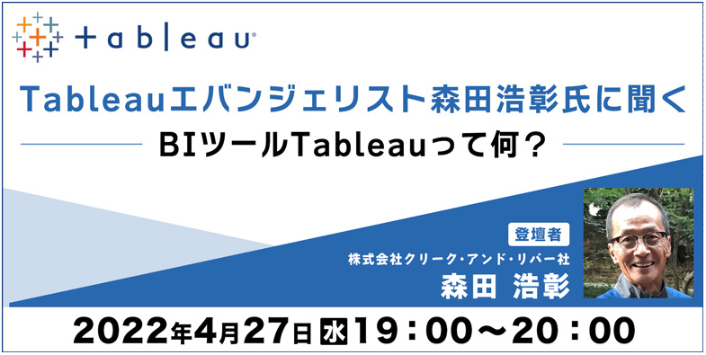 BIツールTableauって何?Tableauエバンジェリスト・森田浩彰が解説!4/27(水)無料オンラインセミナー開催