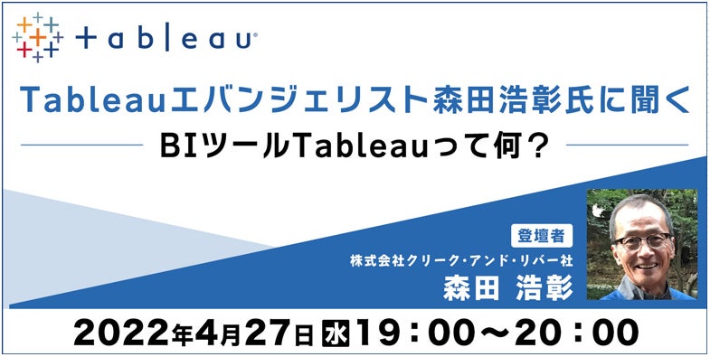 株式会社クリーク・アンド・リバー社(C&R社)は4月27日(水)、データ分析・可視化ができるビジネスインテリジェンスツール(BIツール)にご興味をお持ちの方々を対象に、無料オンラインセミナー「Tableauエバンジェリスト森田浩彰氏に聞く ~BIツールTableauって何?~」を開催いたします。