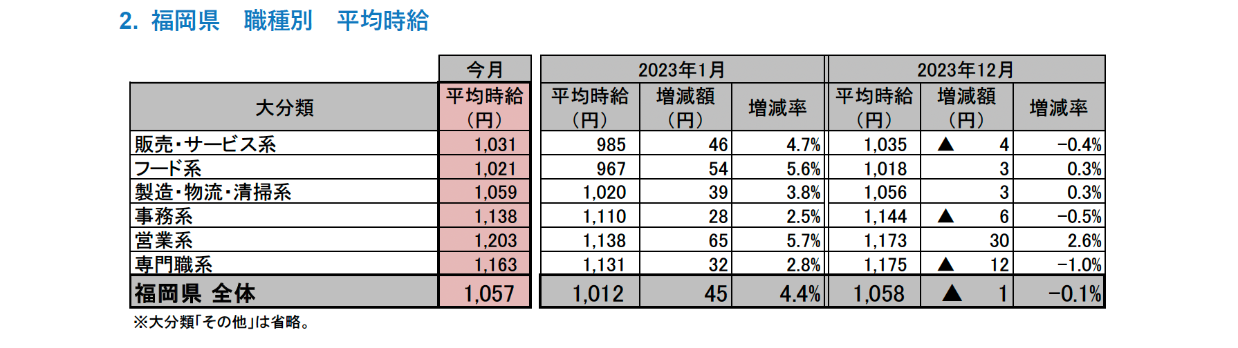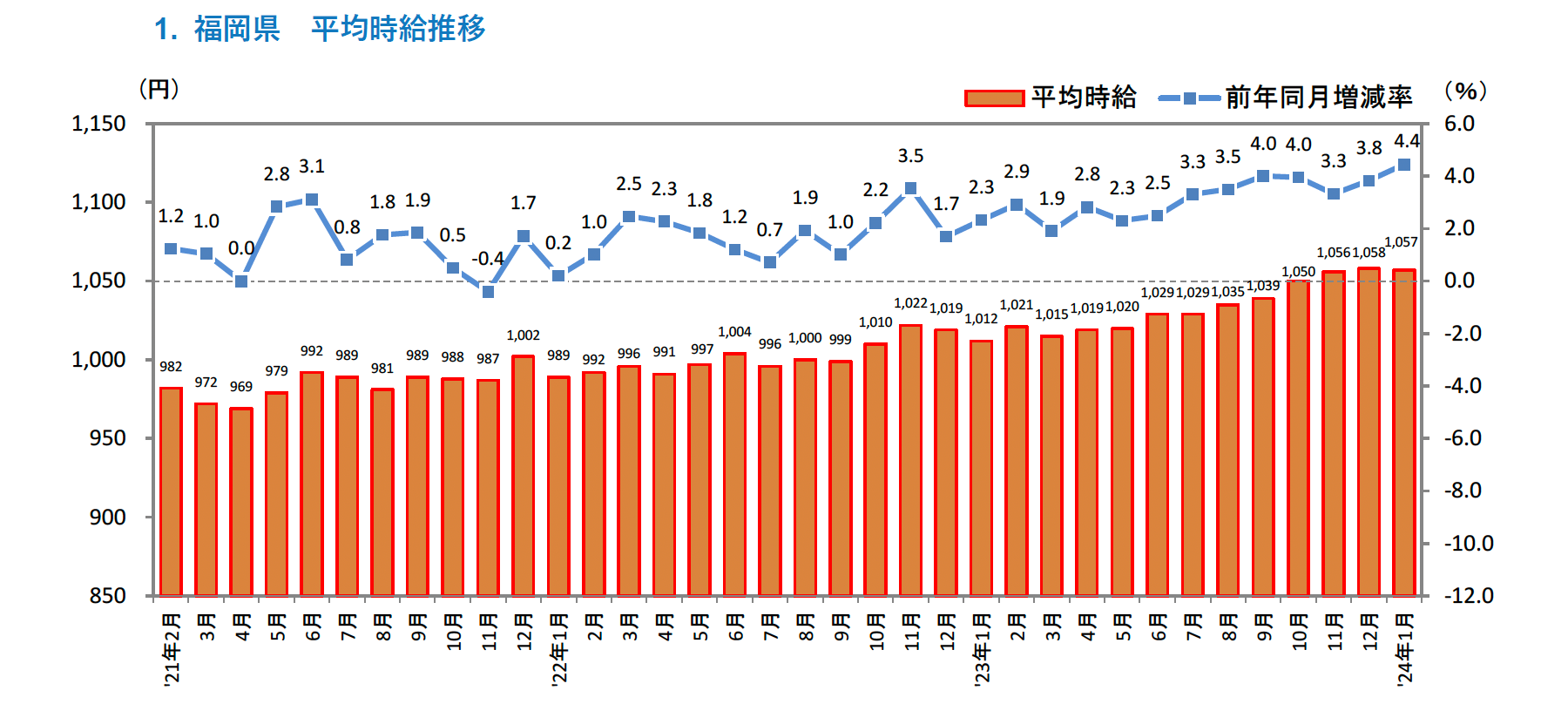 ■福岡県の平均時給は1,057円(前年同月1,012円、前月1,058円)
