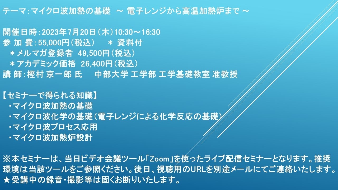 【ライブ配信セミナー】マイクロ波加熱の基礎 ~ 電子レンジから高温加熱炉まで ~ 7月20日(木)開催 主催:(株)シーエムシー・リサーチ