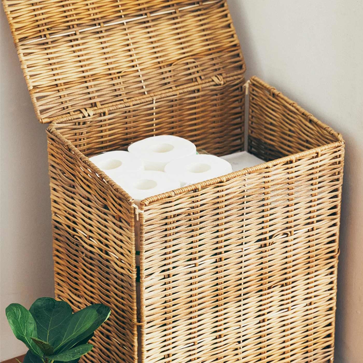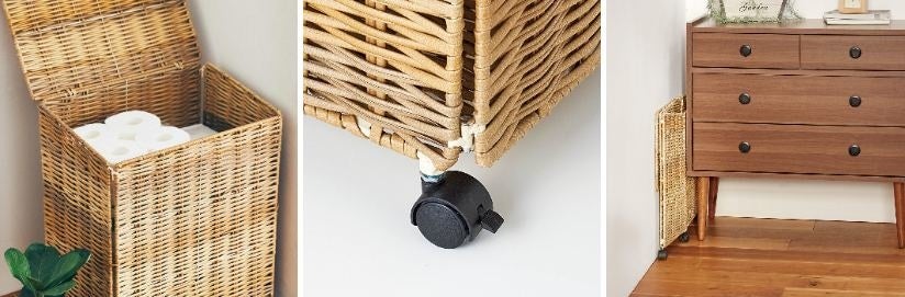 7つ星ポイントでたっぷり入って上手に隠す「天然素材風キャスター付きバスケット」がフェリシモ「am&be[アンビィ]」から新登場