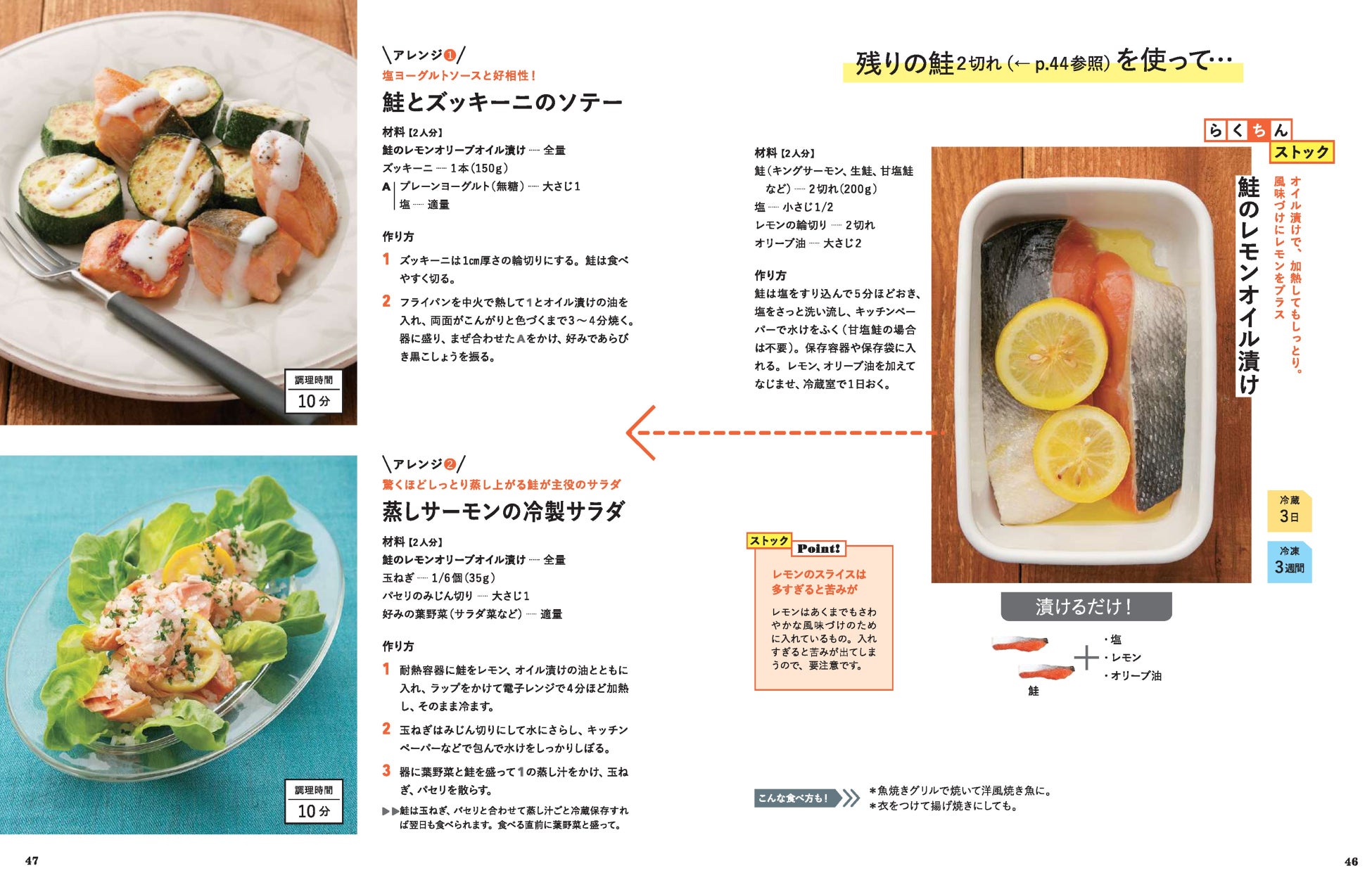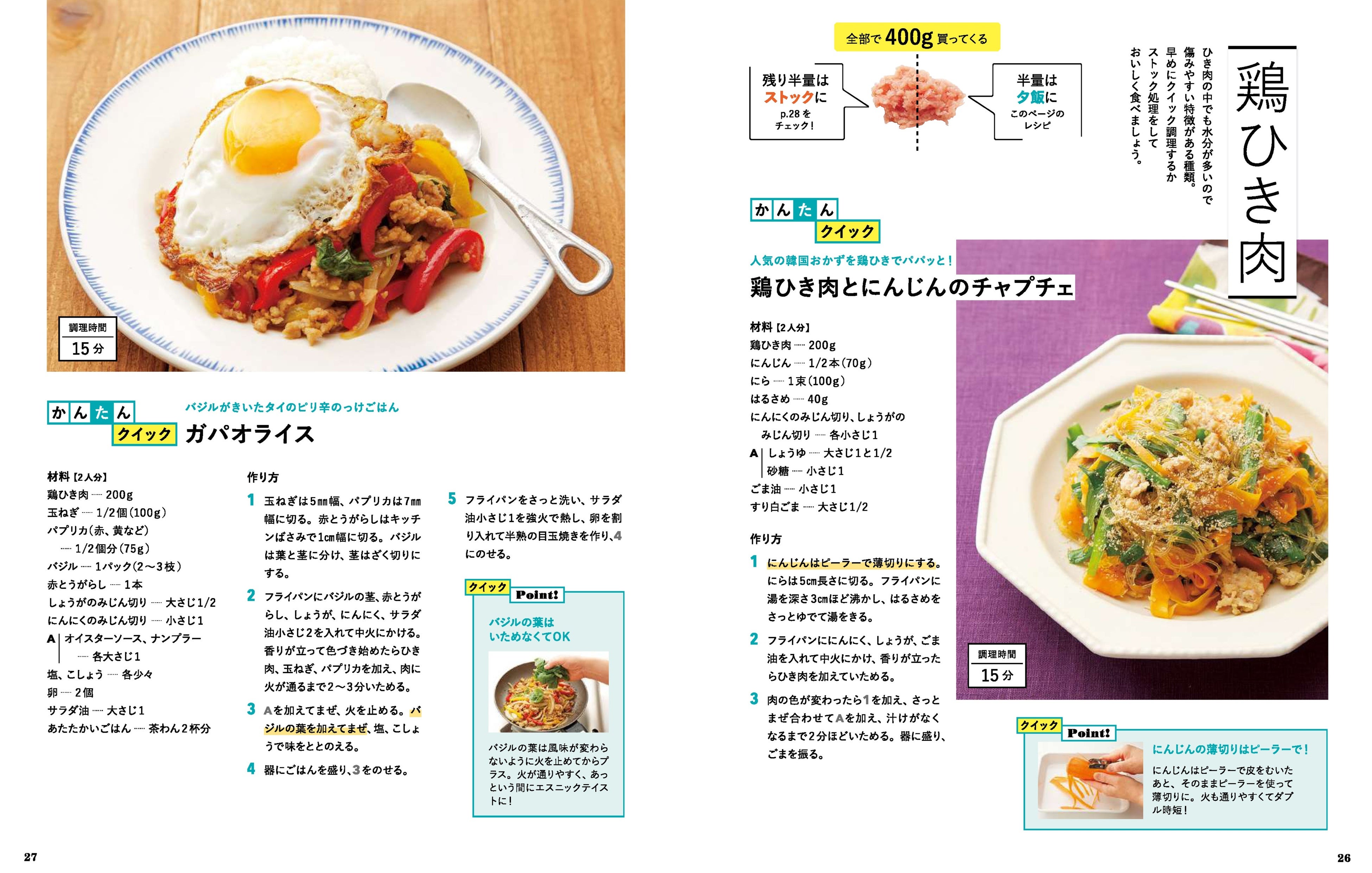 1章では肉・魚、2章では野菜のクイック&ストックレシピを収録。