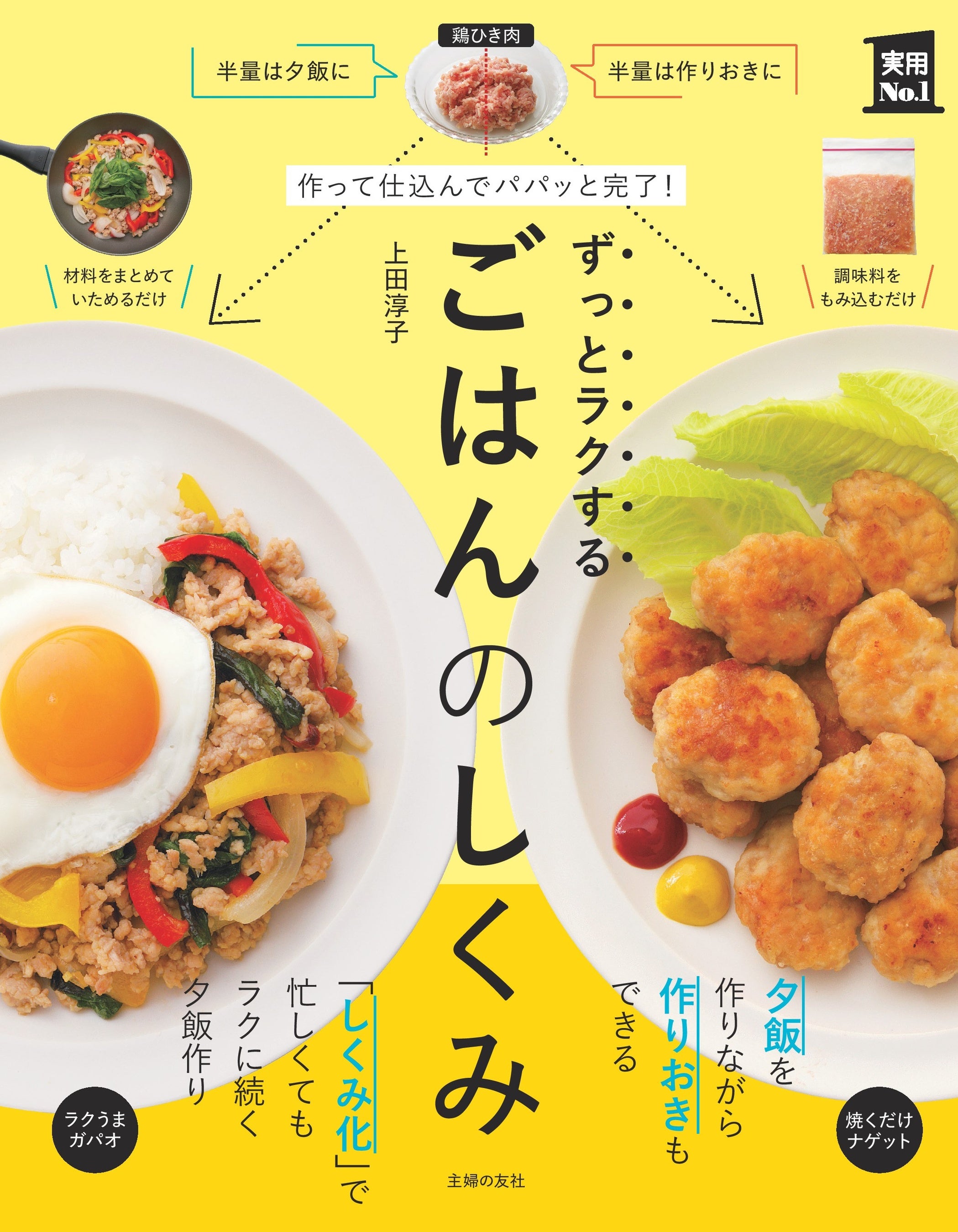 本書は、料理の続く「しくみ化」で、こんな平日の夕飯作りのユーウツや、休日のまとめ作りから解放されるレシピ本です。