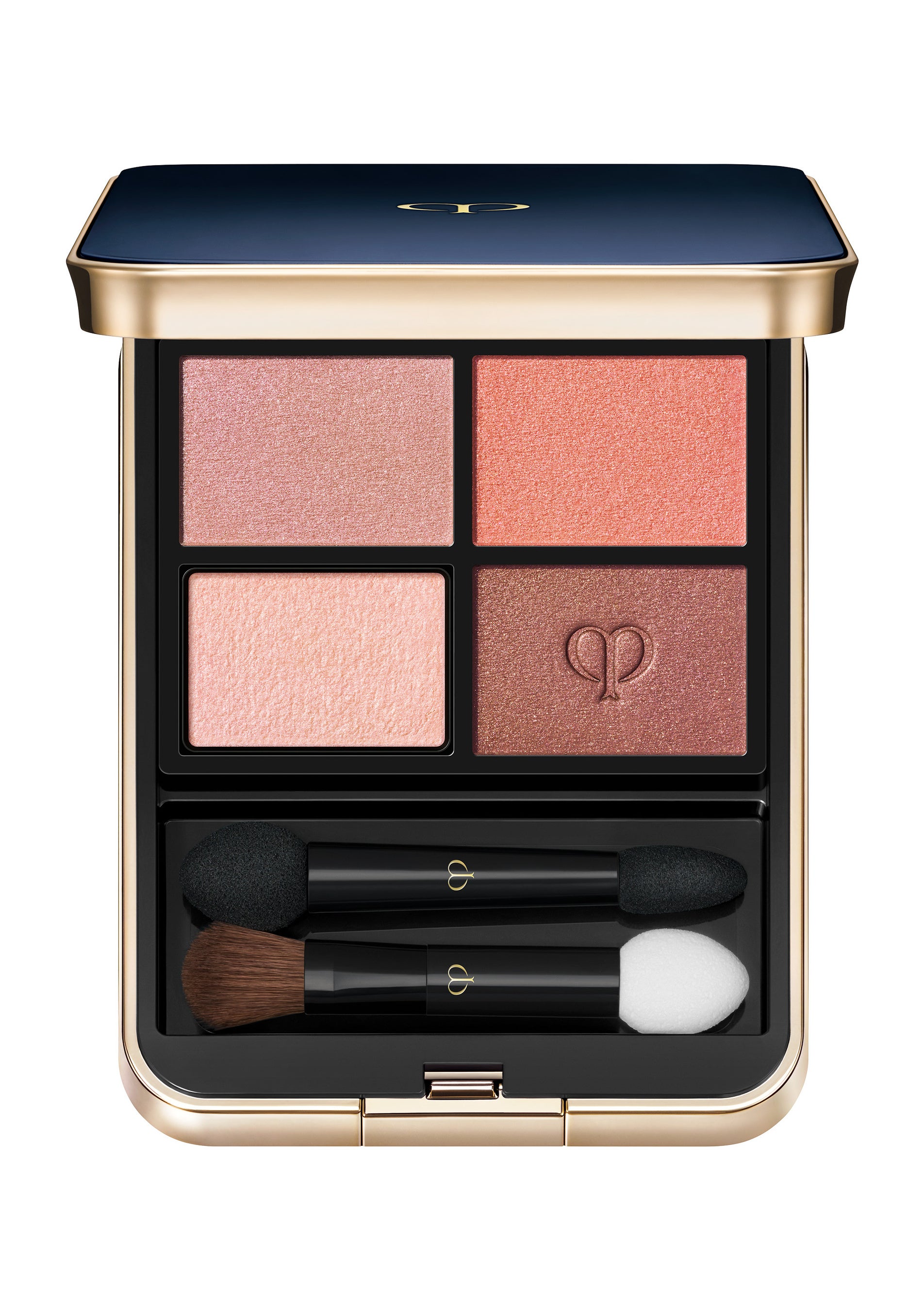 ブランドを象徴するブルーブラックとインフィニティゴールドの配色を踏襲しています。天面に施されたクレ・ド・ポー ボーテを象徴するロゴが、シンプルながら品格を感じさせるパッケージです。使用時の高揚感を高め、メイクポーチの中でも存在感を放ちます。