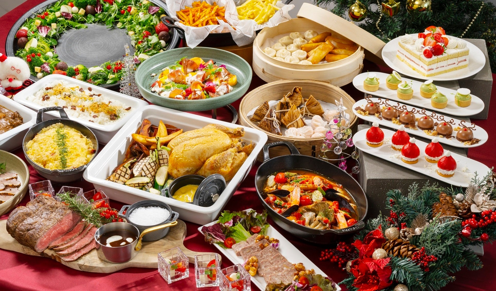 ローストチキンや旬の温野菜、ホテルパティシエのスイーツが並ぶ華やかなビュッフェを、土日限定でご提供。大人1名につき小学生1名が無料になるファミリー特典付きで、三世代みんなで楽しむクリスマスランチをお楽しみいただけます。