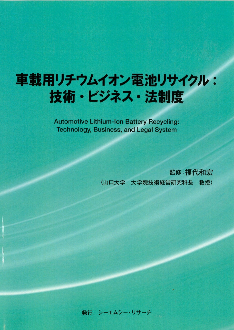 【新刊案内】車載用リチウムイオン電池リサイクル:技術・ビジネス・法制度 監修:福代 和宏(山口大学大学院 教授) 発行:(株)シーエムシー・リサーチ