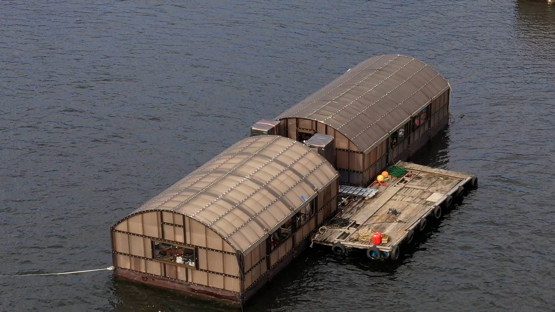 ドーム船に入ると室内はストーブ完備。真冬でも寒さ知らずでワカサギ釣りを楽しむことができる。