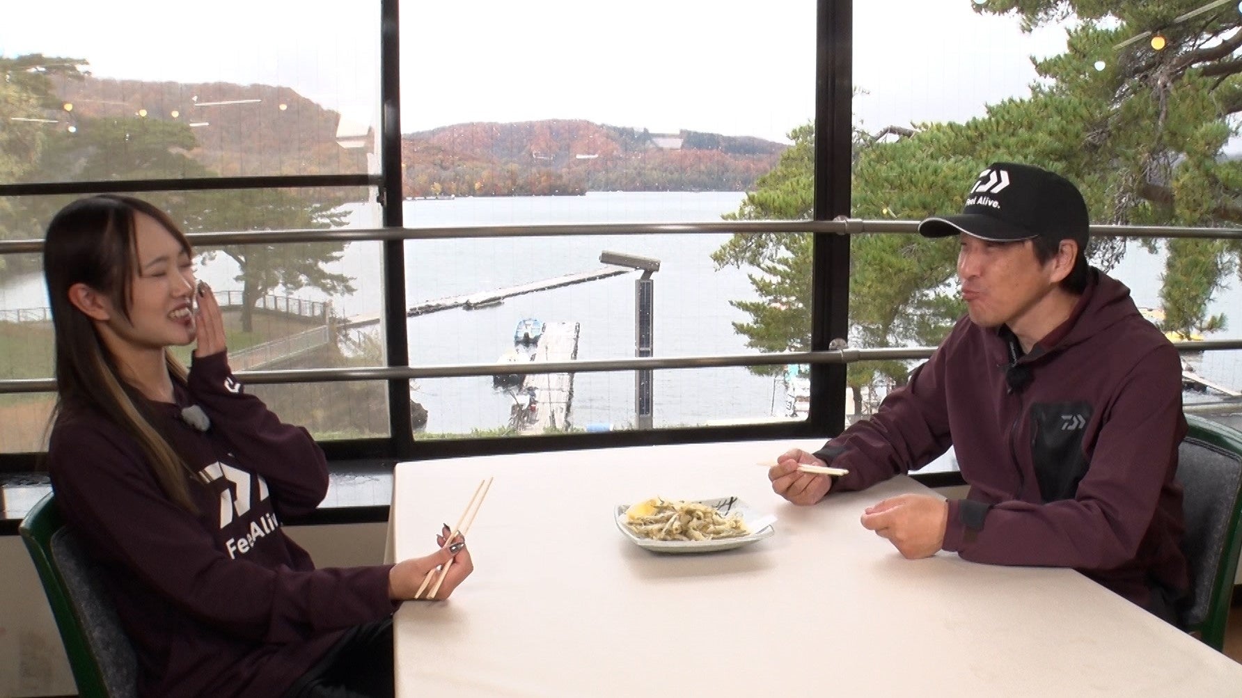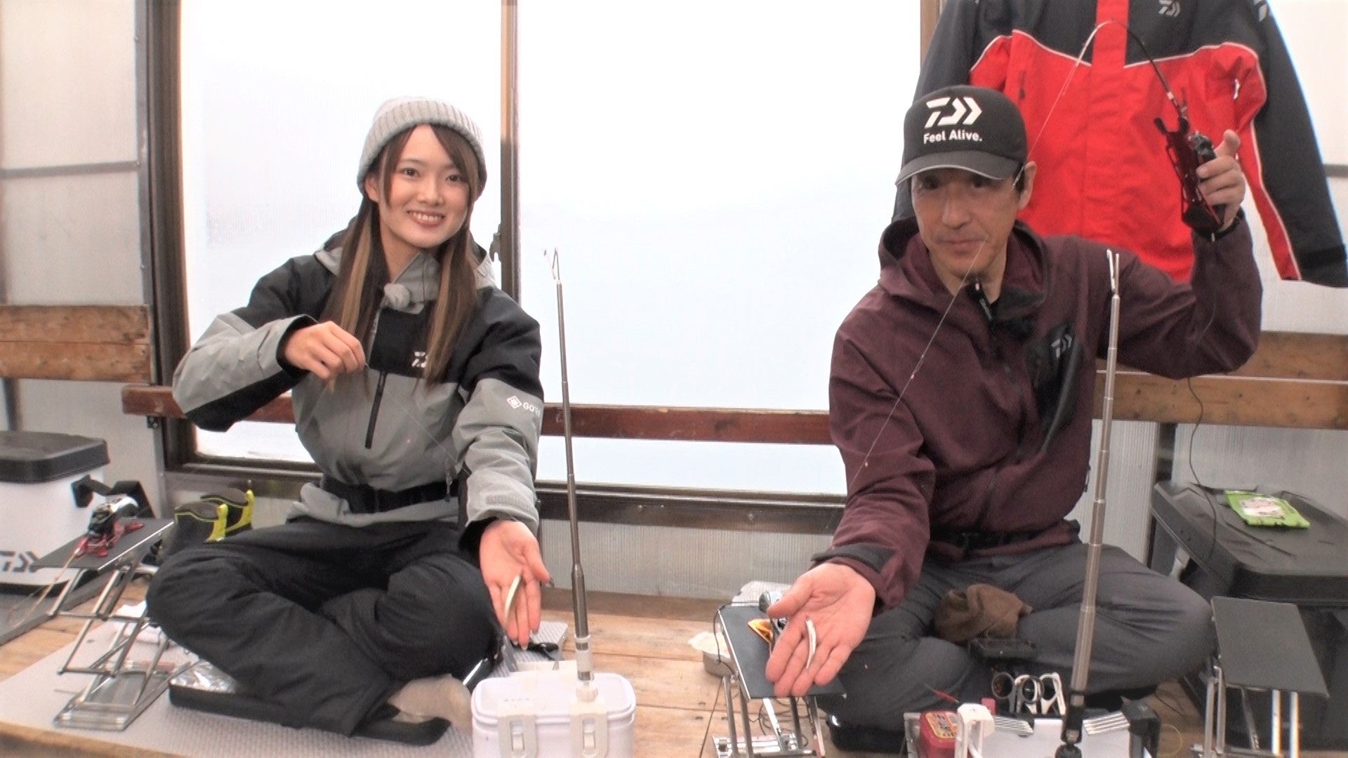 アングラーは桧原湖をホームグラウンドとするエキスパート・久保田稔と、ワカサギ釣りは2回目の挑戦となる竹内麻純。