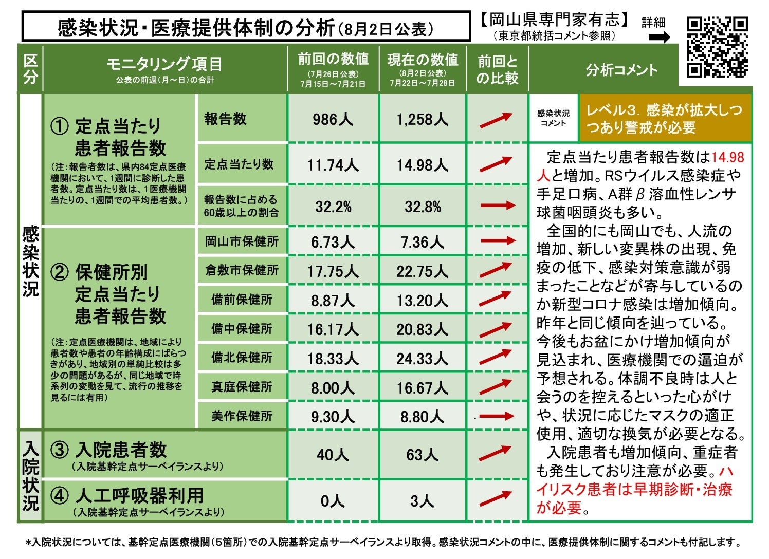 【岡山大学】岡山県内の感染状況・医療提供体制の分析について(2024年8月2日現在)