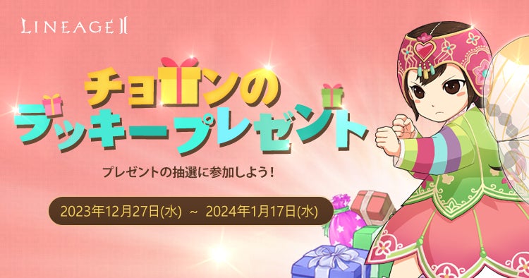 『リネージュ2』【ライブサービス】「チョロンのラッキープレゼント」実施中!【クラシック/アデンサービス】にも注目の新ベントが登場!ひと足早めのお年玉チャンス!年末年始も『リネージュ2』で遊ぼう!