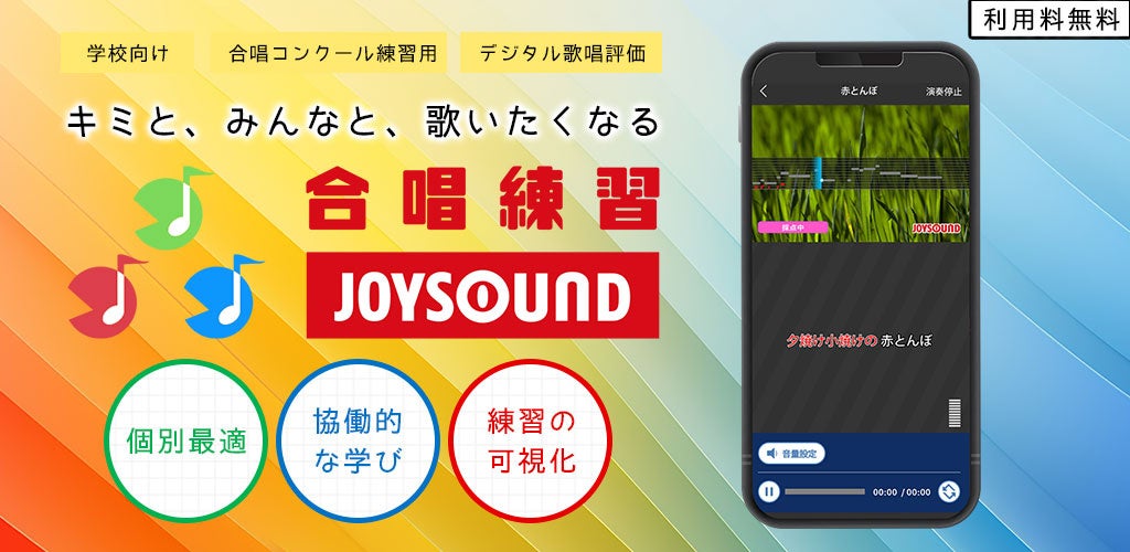 株式会社エクシング(本社:名古屋市瑞穂区、代表取締役社長:水谷 靖)は、合唱コンクールをはじめとした、学校での合唱の練習にご活用いただけるスマートフォンアプリ「合唱練習JOYSOUND」を、本日7月24日(水)から無料配信します。