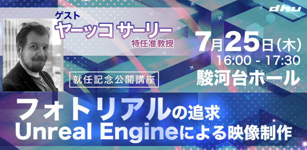【公開講座】ヤーッコ サーリー特任准教授 就任記念『フォトリアルの追求Unreal Engineによる映像制作』(参加無料)