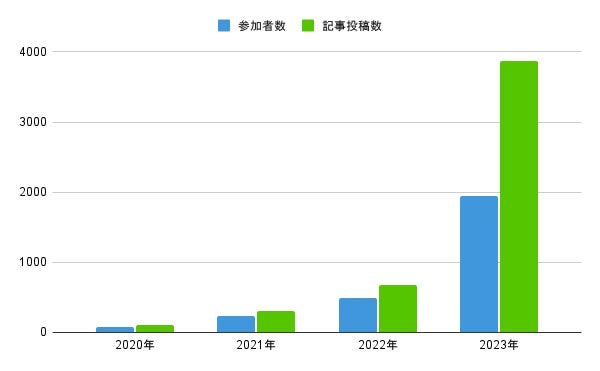 2023年6月〜7月に開催された「Qiita Engineer Festa 2023」は前年比390%以上の1,942名の参加者数を記録。そして前年比500%以上の3,876件の記事が投稿され、過去最大の盛り上がりとなりました。