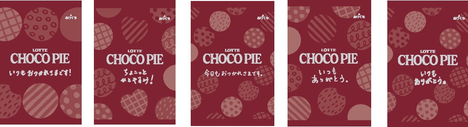 ◆個包装のデザインは背景やメッセージが複数パターンあります。チョコパイに携わる社員がそれぞれ思いを込めて書いた手書きのメッセージなので筆跡も複数です。