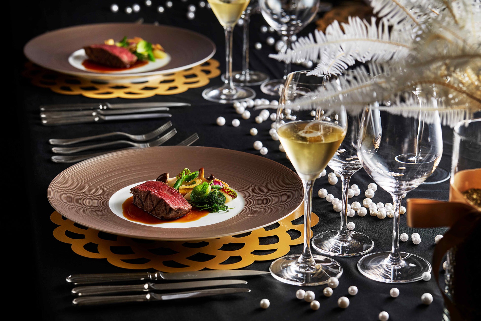 煌びやかな装飾とシャンパンツリーが輝く空間で始まるのは、厳選されたドリンクとカナッペを愉しむカクテルレセプション。その後は、シェフが心を込めて手がける華やかなガラディナーへと続きます。