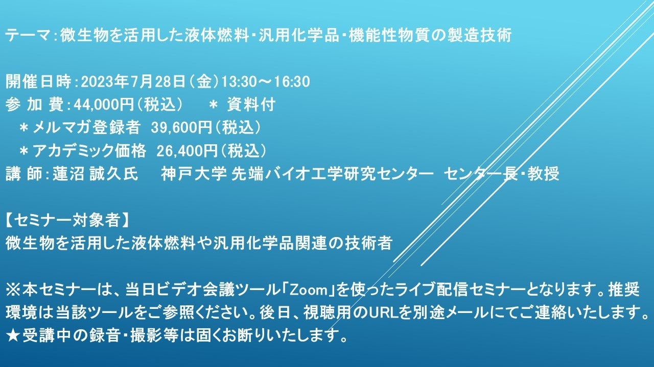 【ライブ配信セミナー】微生物を活用した液体燃料・汎用化学品・機能性物質の製造技術 7月28日(金)開催 主催:(株)シーエムシー・リサーチ