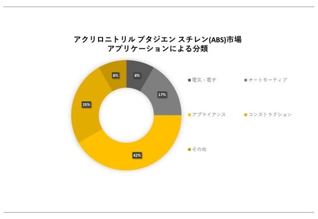 アクリロニトリル ブタジエン スチレン(ABS)の代替品として、様々なものが市場に出回っています。そのうちのいくつかは、アクリロニトリル スチレン アクリレート(ASA)とプラスチックセルロースです。ASAは、ABSよりも耐薬品性や衝撃強度に優れています。一方、ASAはABSよりも耐候性に優れ、屋外での使用に適している。さらに、イーストマンは、ABSに代わる環境対応型プラスチックとして、セルロースベースの新素材「トレバ」を発売しました。これは、責任を持って管理された北米の森林から調達された45%のセルロースベースのプラスチックで構成されています。 したがって、市場には他の強力なポリマーが存在するため、市場成長の妨げになる可能性が高いです。