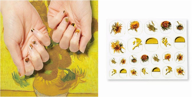19世紀に活躍したオランダ生まれのポスト印象派を代表する画家、フィンセント・ファン・ゴッホの絵画からインスパイアされたネイルアートを、ネイリスト大森莉紗さんがデザイン。つめの先や根もとに寄せてあしらったり、マニキュアのカラーと合わせたりと、テクニック不要でさまざまなアレンジが可能。つめのサイズや形も選びません。