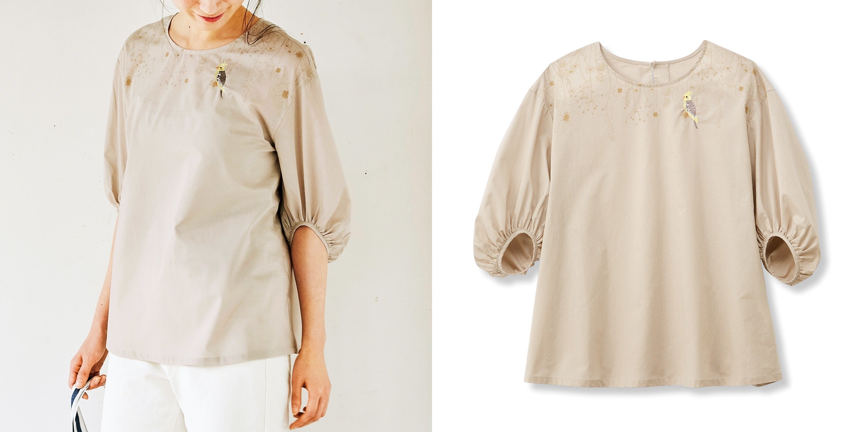 いつでもどこでも一緒。お花と小鳥が遊ぶブラウス