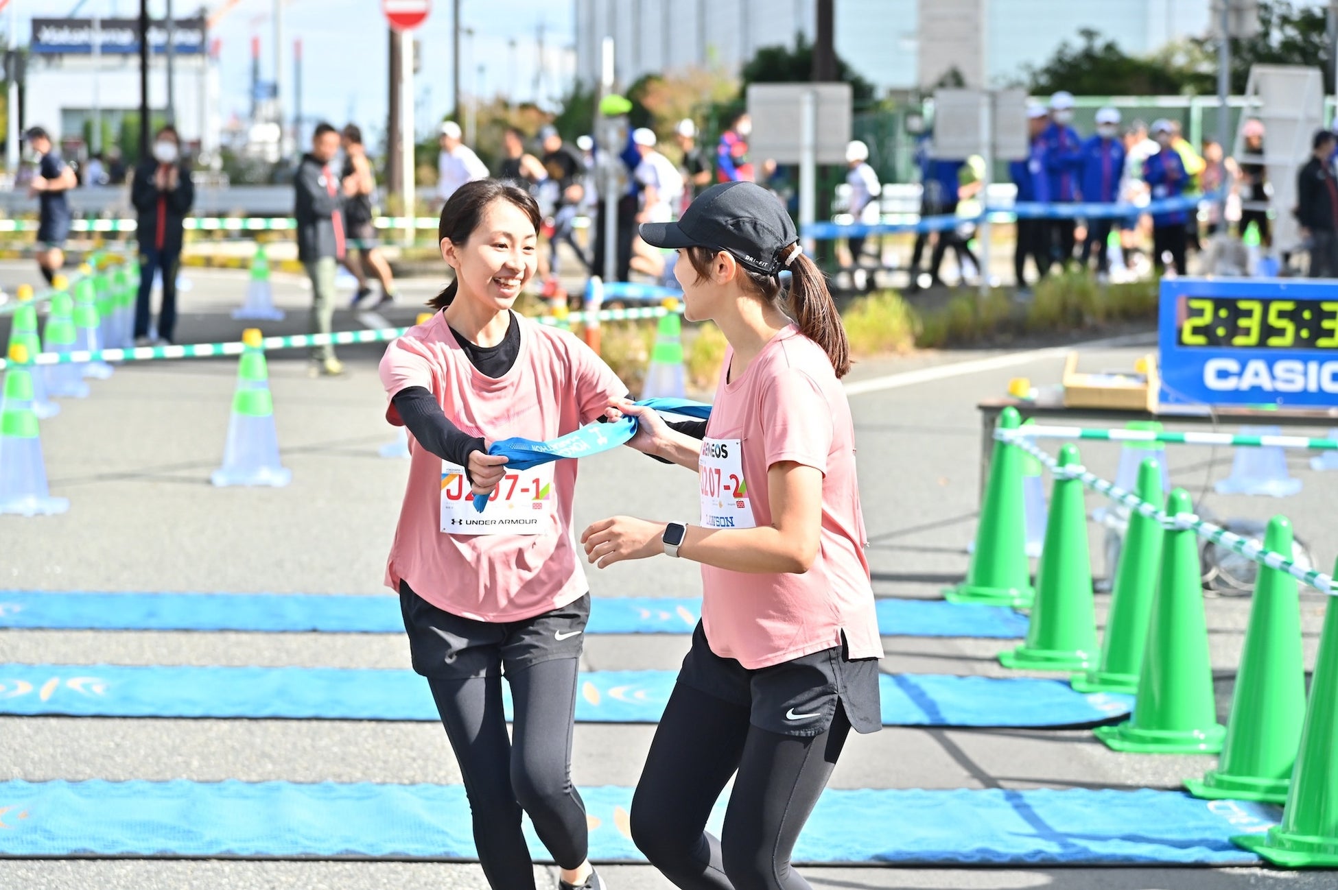福島さんも「最初から最後まで楽しかったです。スタート時は雨が降ってたんですけど、それを忘れさせてくれるくらいにフィニッシュゲートでは太陽が出迎えてくれて爽やかな気分です!」とゴールした直後に笑顔で答えてくれました。「今日は給食(全てのランナーに提供することを想定した定番のメニュー)を全制覇して、めちゃくちゃ元気で『もう一周行きたいな』っていう感じです(笑)」と、給食をたっぷりと味わった様子。コースについては「高速道路は普段走れない場所なので、ありがたくというか贅沢な気分で走らせてもらいました。それと横浜の街は活気があって賑やかなんですけど落ち着いた雰囲気もありますので、全国の方に走ってほしいなと思いましたし、日本に限らず世界の方々にも走ってほしいなって思いました」と魅力も語り、「ものすごく余裕を持って走ることが出来ましたのでめっちゃ楽しかったです」と改めて走り終えた気持ちを伝えてくれました。