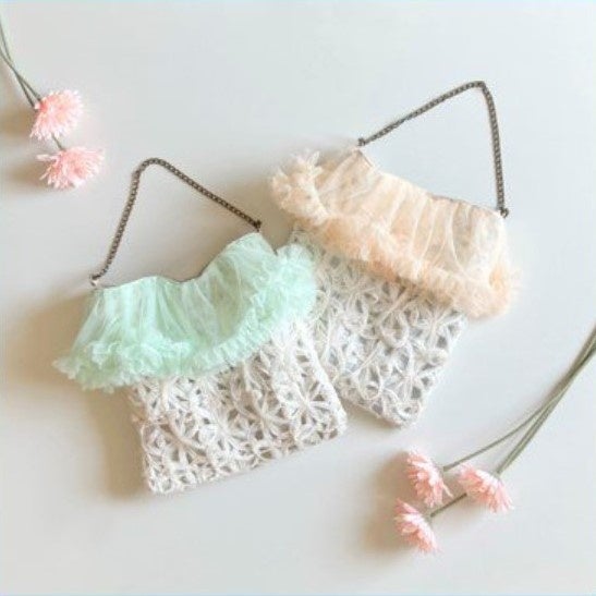 大ぶりのフラワー模様の珍しいレースとチュールフリル使いがロマンティックでシアー感が今年らしい1点。